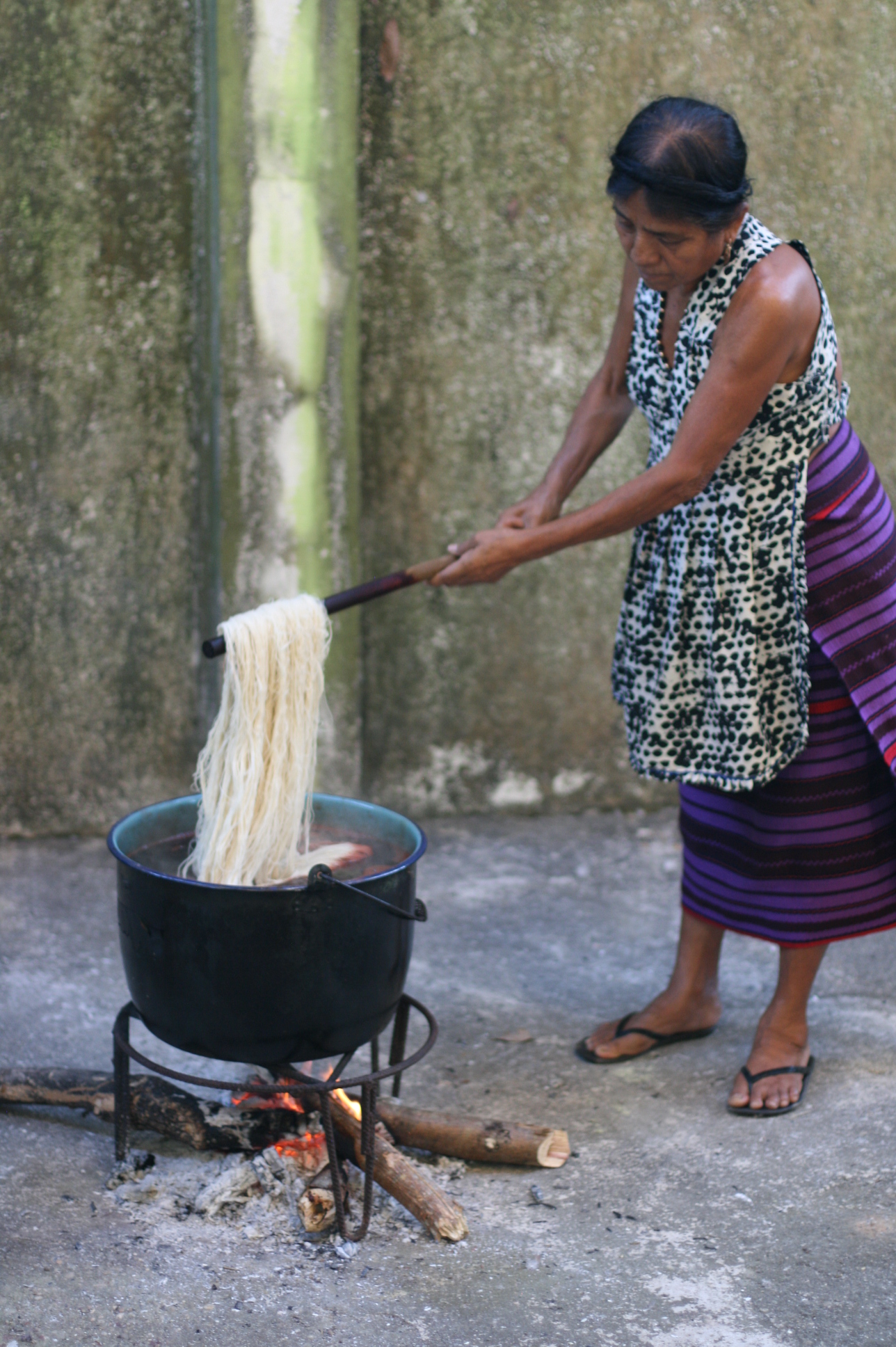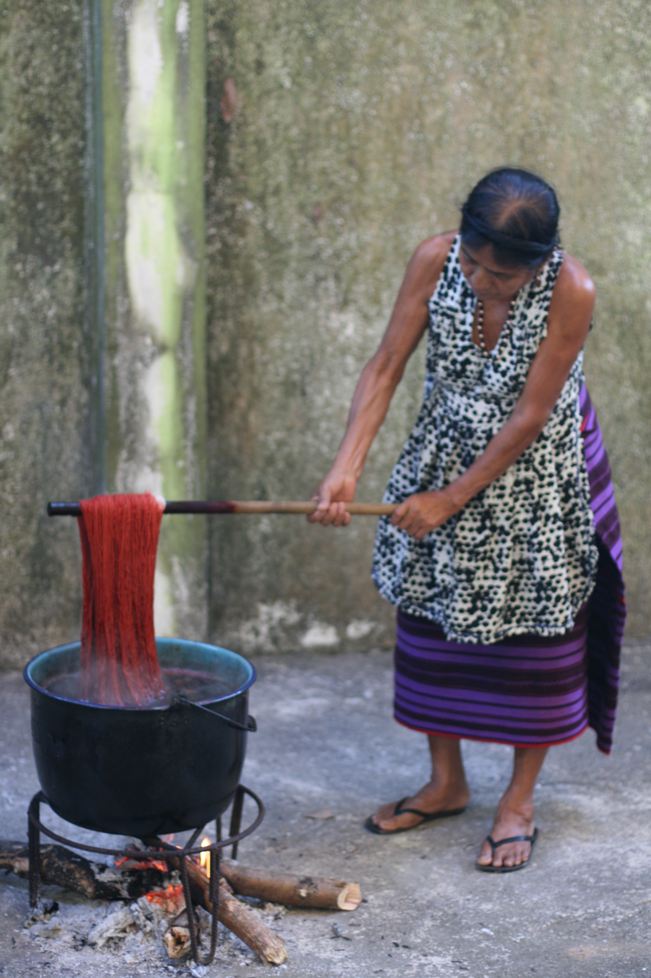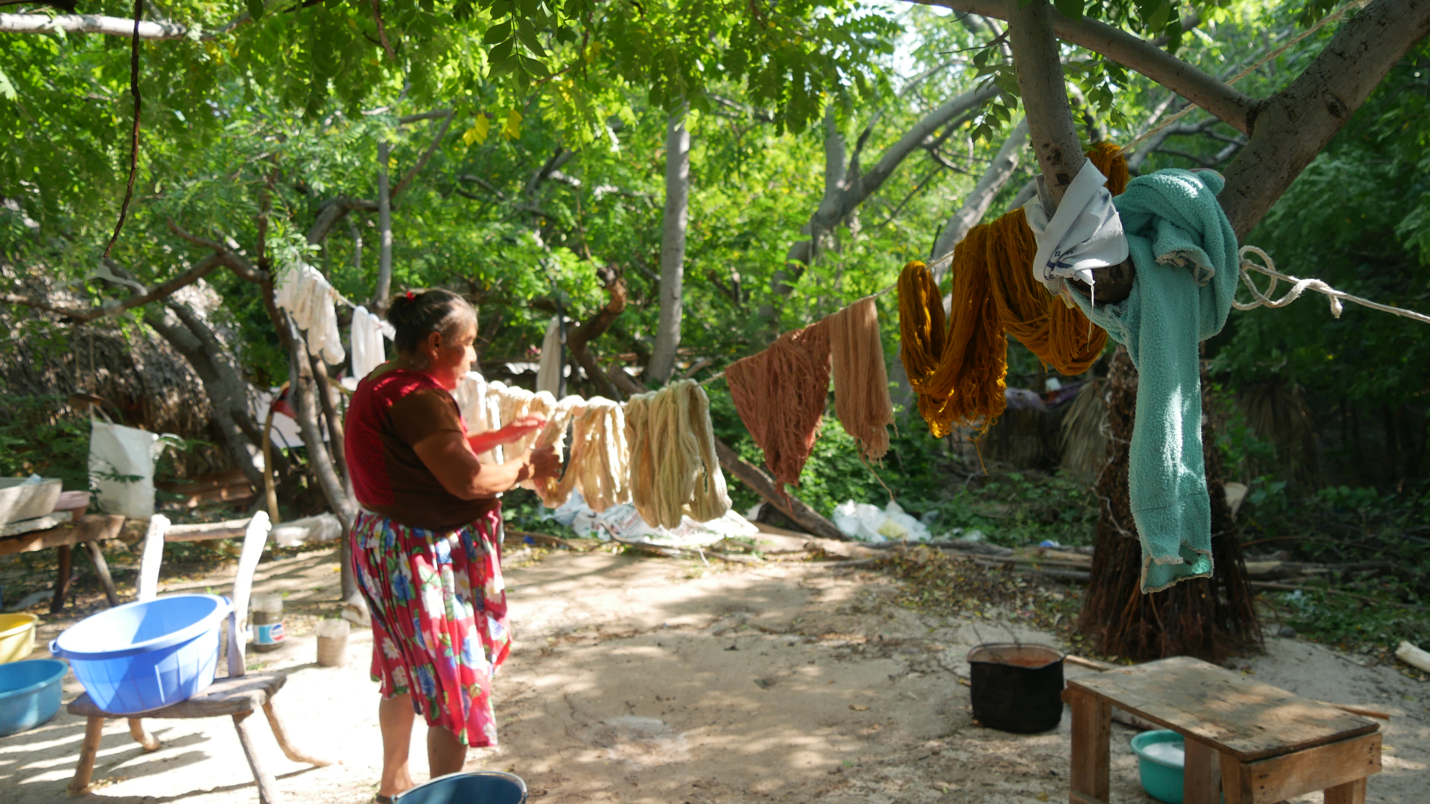 Depuis 2008, l’artiste Carlos Reyes donne des cours de teinture avec des composants naturels aux communautés autochtones dans le but de récupérer cette technique ancestrale qui a été abandonnée au profit des teintures chimiques.
