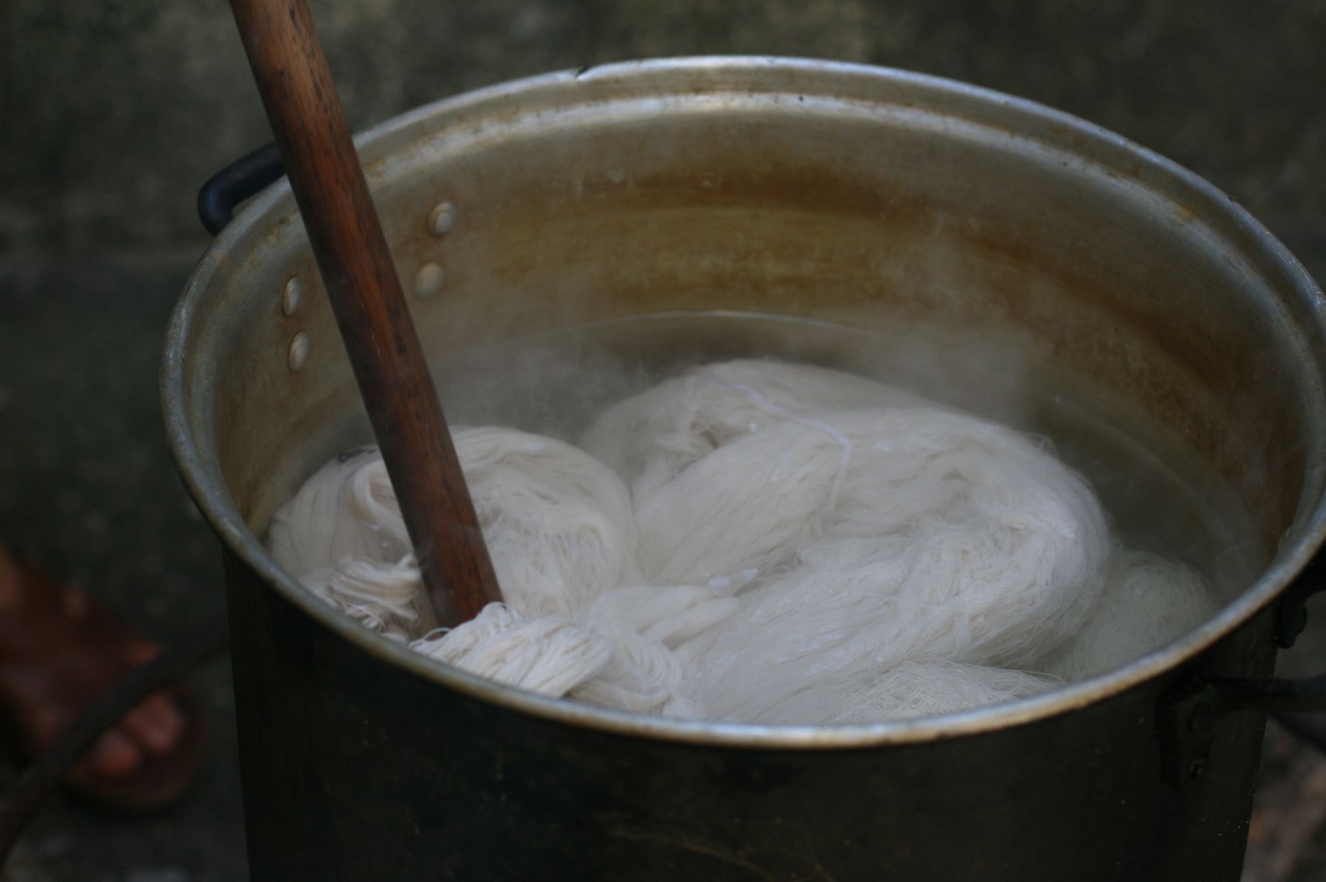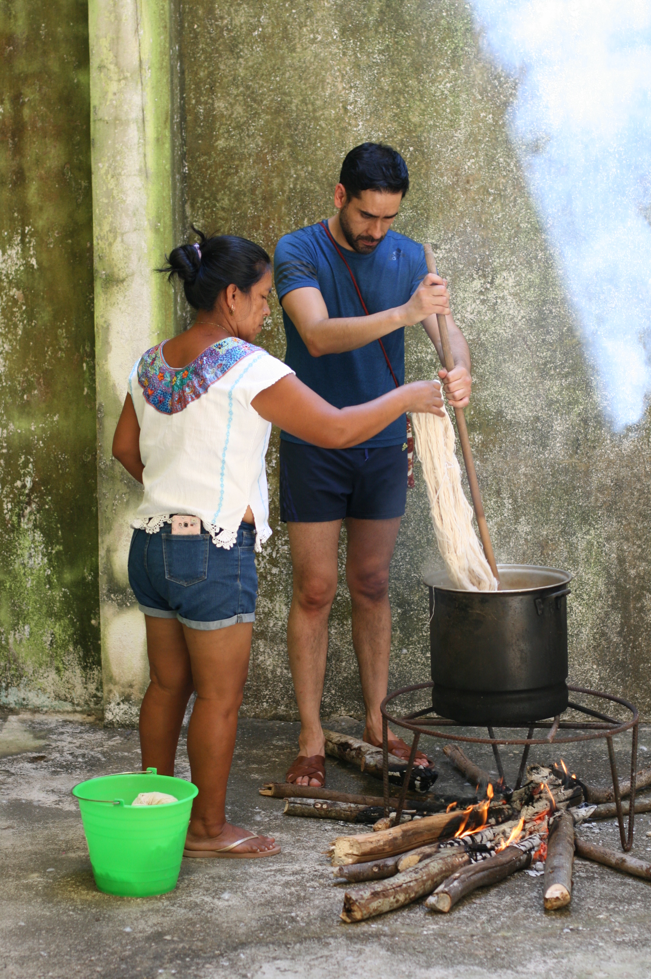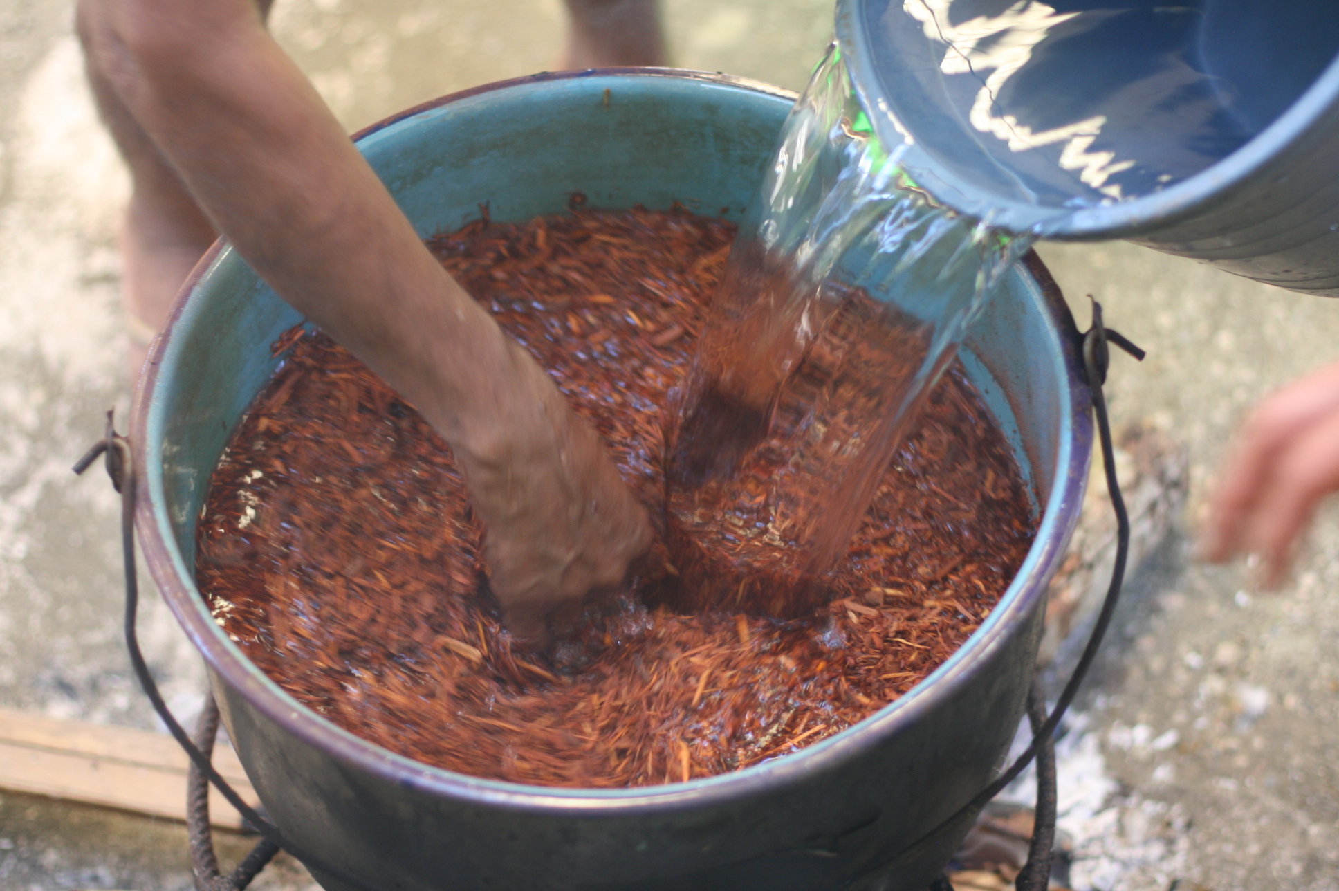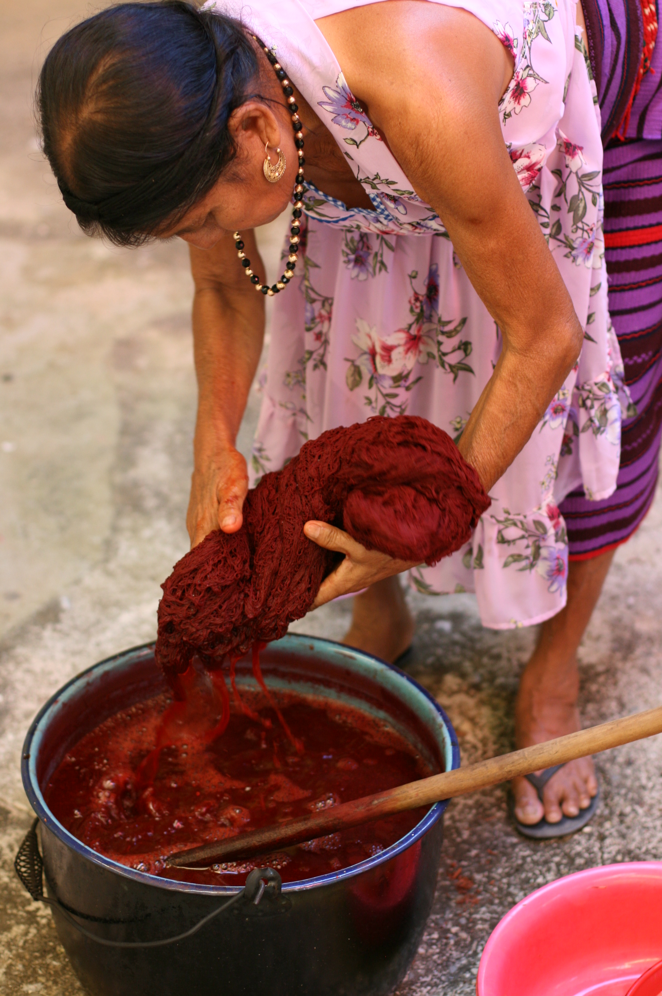 Depuis 2008, l’artiste Carlos Reyes donne des cours de teinture avec des composants naturels aux communautés autochtones dans le but de récupérer cette technique ancestrale qui a été abandonnée au profit des teintures chimiques.